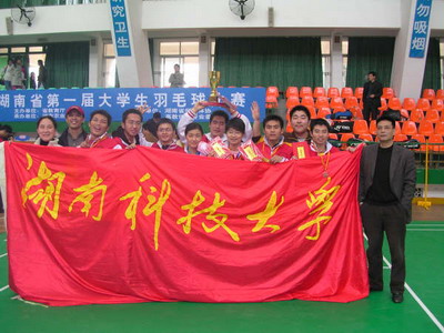 3月25日,湖南省第一届大学生羽毛球赛场传来喜讯,我校大学生羽毛球代表队团结奋战, 一举夺得团体季军,单项混合双打第三,男子单打、双打第五的好成绩,为学校赢得了荣誉。