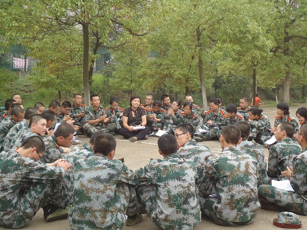 头顶着似火的骄阳,脚踏着坚实的大地,诺大的场地上,五个排的计算机骄子正在不知疲倦的训练着,随着教官有力的呼喊声,同学们不停地抬腿、踏步、收腿……汗水与笑脸相映,步伐伴尘土腾飞。各排组织工作扎实有序,党委副书记、辅导员老师带领新生助班、主要学生干部全程陪同训练。清晨集训我们总能看到尹书记身着一袭军装和助班们出现在大家面前。中场休息时,杨飞英老师还教大家学会苦中作乐,一首《大海》的激情演唱,让同学们倍感老师的关怀。为了检查和巩固大家两天来所学的动作,下午3点,在尹书记指导下,全连进行了一次小会操。