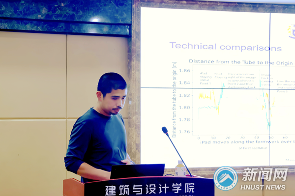 讲座期间,冯哲楠系统分析了AR技术在建筑行业的应用现状,明确指出当前国内外施工建造领域普遍存在生产力较低的行业痛点。他表示,AR技术已在建筑设计、施工管理及现场安全等核心环节展现出显著应用潜力,但在异地施工场景中的技术应用研究仍存在空白,亟待突破。针对这一关键问题,冯哲楠博士团队研发了手持式视频透视AR应用。他还结合实验数据向大家详细介绍了该技术取得的成果。