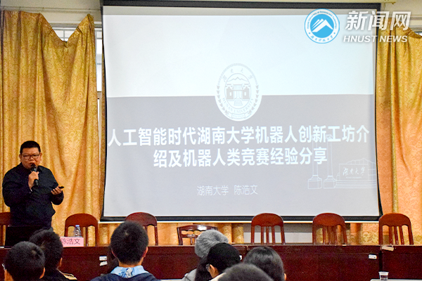 10月27日下午,由创业创新学院主办,计算机科学与工程学院承办的“创新创业大讲堂”第一百二十讲于逸夫楼101会议室举行。湖南大学天阳金融超算联合创新中心副主任陈浩文主讲《人工智能时代湖南大学机器人创新工坊介绍及机器人类竞赛经验分享》,学院党委副书记王方,学院教师代表出席,学生代表与会。