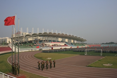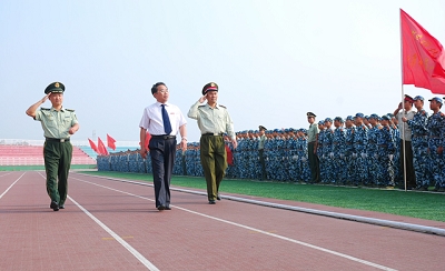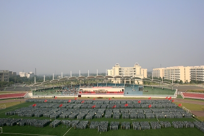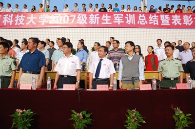 9月21日上午,我校07级新生在北校区新田径场隆重举行军训总结暨表彰大会。校党委书记肖国安、校长田银华及其他校领导、军训团主要领导、各机关处室主要负责人、各教学院主要负责人出席了会议,07级全体新生参加了会议。大会由校党委副书记刘建武主持。