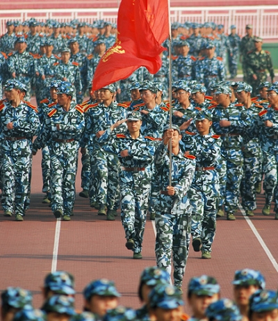 八点三十分,大会在庄严的国歌声中拉开帷幕。大会首先举行了阅兵式。校长田银华在07级新生军训团政委、人民武装部部长李红革及军训团团长曹谷桥的陪同下检阅了新生列队。随后,新生们以学院为单位组成方阵队进行分阅式。新生们个个英姿飒爽、激情飞扬并以嘹亮的口号、整齐的步伐赢得了在场领导和主席台下观众的阵阵掌声。