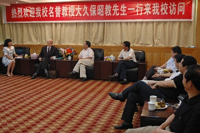 日本圣泉大学原校长、我校名誉教授大久保昭教先生5月22日来我校访问。校长田银华、副校长刘德顺于当天上午11:00在学术交流中心二楼会议室会见了大久保昭教,并与之进行了深入而广泛的交流。曾赴日进行学术交流的有关部门负责人参加了交流会。