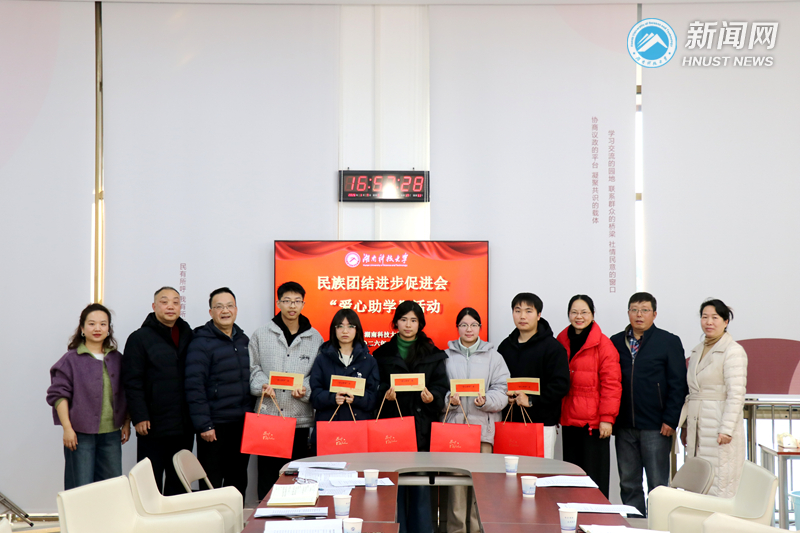 为深入学习贯彻习近平总书记关于民族宗教工作的重要论述,扎实推进民族团结进步工作,以统战团体“四同四立”主题思想为引领助力少数民族学生成长成才,1月7日下午,我校民族团结进步促进会在立德楼101会议室举行理事会议暨“爱心助学”活动。湘潭市民族团结进步促进会顾问向大顺,副会长舒艳,学校宣传统战部常务副部长李洪华、副部长罗登辉莅临指导,校民族团结进步促进会理事及少数民族受助学生代表参加活动。会议由校民族团结进步促进会常务副会长苏立云主持。