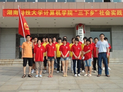 7月5日下午,我校计算机科学与工程学院2011年暑期“三下乡”社会实践启动仪式在逸夫楼门口隆重举行。院党委副书记尹风雨、学工办主任吴成义以及我院学生志愿者参加了此次启动仪式。