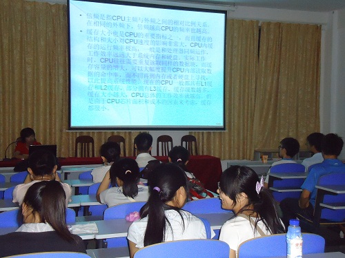7月7日晚7:00,计算机科学与工程学院“三下乡”送科技进社区服务队在逸夫楼108举行了电脑知识高级讲座。科大周边居民及各学院计算机爱好者前来聆听了本次讲座,并由“三下乡”队员王富民担任主讲。
