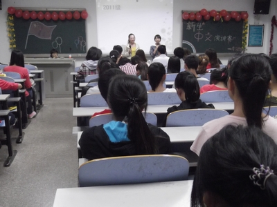 礼赞中华,放飞梦想。外国语学院以“礼赞九十华诞,求索梦想之声”为主题的中文演讲比赛于10月9日晚7:00在411教室震撼登场。此次比赛特邀主席团成员担任评委,11级同学激情参与。