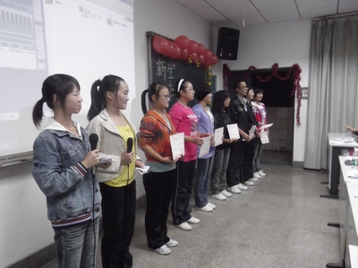 最后,来自英语四班的曹佳秀出色的表现赢得了大家的一致好评,摘得本次比赛的桂冠。对外一班沙沁池、日语一班唐小竹、英语二班段婕荣获二等奖,三等奖分别是对外二班唐晶、日语一班袁晓辉,优胜奖则由英语二班张欢和英语三班向彩玲夺得。