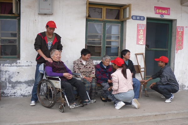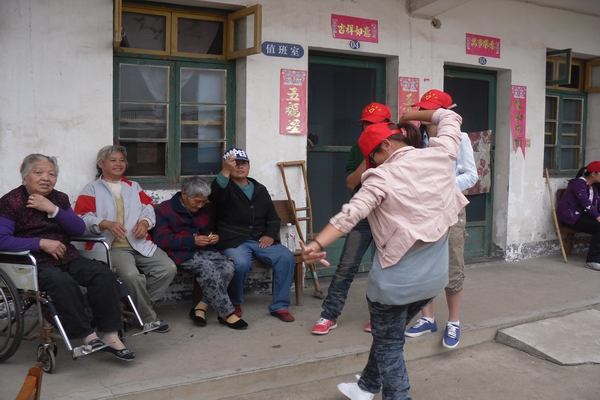 上午8时,一群头戴小红帽的青年志愿者从我校新公寓门口集合出发,带着爱心礼物骑自行车前往慰问地——先锋乡敬老院。车行半小时后到达了目的地,志愿者们的到来立即使沉闷的敬老院沸腾起来。志愿者们分成三组,两组负责两栋住宿楼的卫生打扫,一组负责与老人一起聊天谈心,进行娱乐活动。志愿者们细心地扶着老人从房间出来,与他们坐在一起聊天倾诉,解开老人心中紧紧的枷锁;询问老人们的生活情况,尽力帮助他们解决生活上的需求,为他们按摩、梳洗穿着、修理收音机、抄写歌词…..志愿者并给老人们带来了趣味丛生的表演,带领老人们一起放声歌唱,一首首《隐形的翅膀》、《甜蜜蜜》、《美酒加咖啡》、《小城故事》等等歌曲,使老人们脸上出现了久违的笑容;志愿者兴也给老人们带来了舞蹈表演,老人们更是欣喜地指导者志愿者扭秧歌,敬老院里出现了难得的欢声笑语,青年们与老人们其乐融融的像一家人一样相处着。