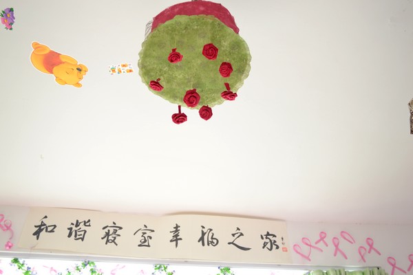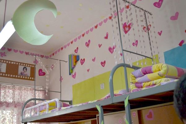 中午12:10,潇湘学院宿管部人员分别到各个入围寝室进行复查评比。站立在三区五栋301-3室门前,“Sweet home”字样手绘海报和四张青春洋溢的照片便映入眼帘。进入到寝室内,便立马感受到一股温馨气息:用绿色彩纸做的马赛克墙壁,满墙的桃红色爱心,天花板上的“满天繁星”和悬挂的“上弦月”,还有那“一帘幽梦”的粉红色窗帘……工管2班的四名同学齐心协力将自己的寝室布置得如家般温暖,尽显女生的细腻与巧手。凭借“温馨甜蜜”的主题与精心装饰,301-3室在众多寝室中脱颖而出获得一等奖。