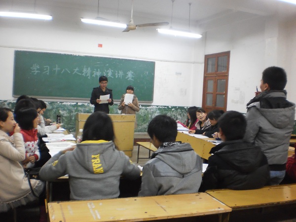 学生党支部第五支部独具一格,采取演讲的形式,开展了一场精彩又富有教育意义的视听盛宴。12月6日晚上7点,五支部学习活动在第四教学楼109教室进行。五位演讲者通过自身学习与领会,与在场的党员同志分享了对十八大精神的理解与学习心得。其间,通过提问环节,十八大精神再一次深入党员心中。